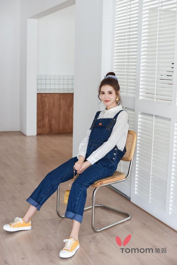 春天怎么能少得了背带裤呢?兔妈孕妇装春季新品牛仔蓝背带裤,方便又实用。搭配经典白衬衫,让孕妈妈充满青春活力。